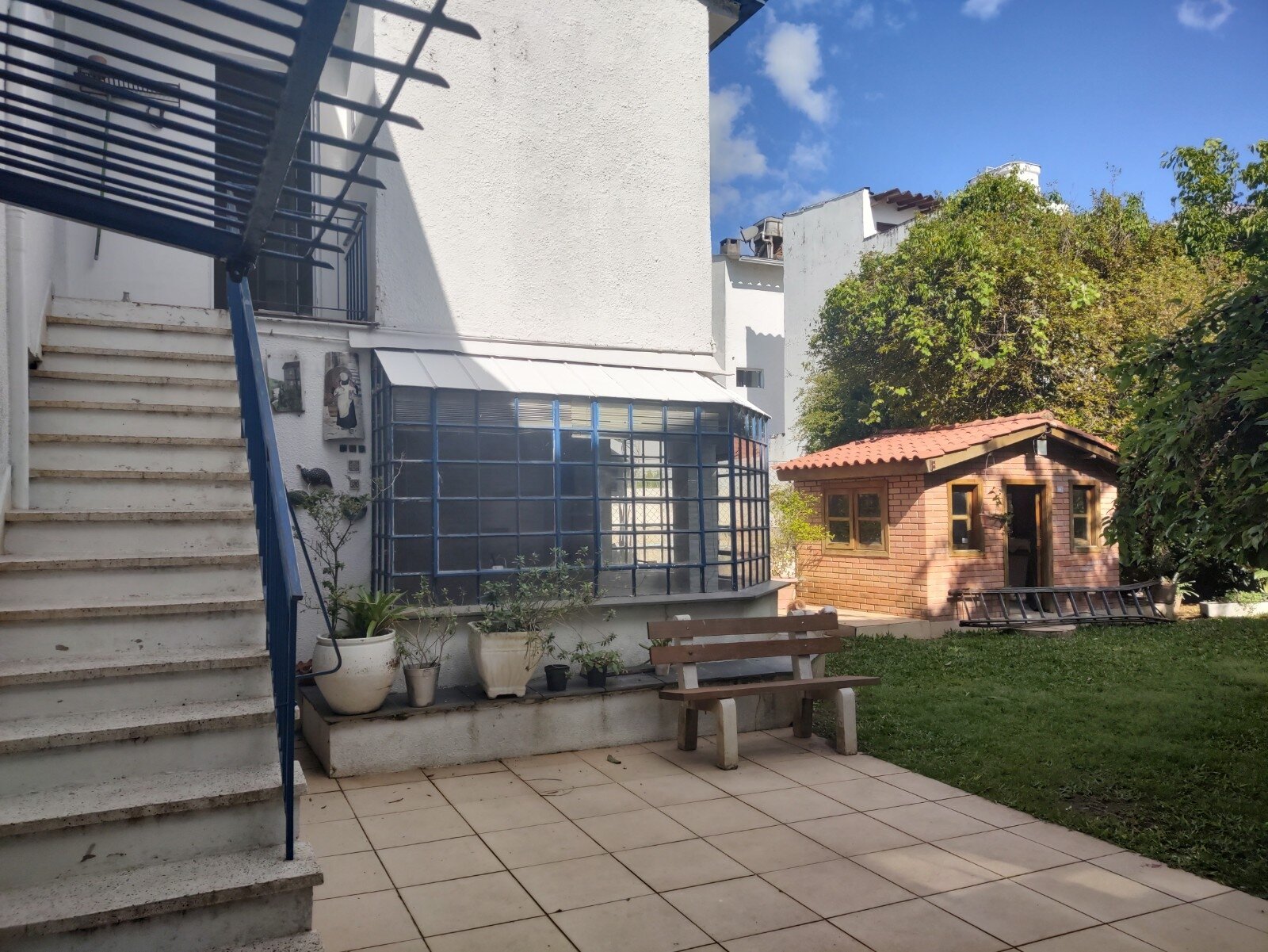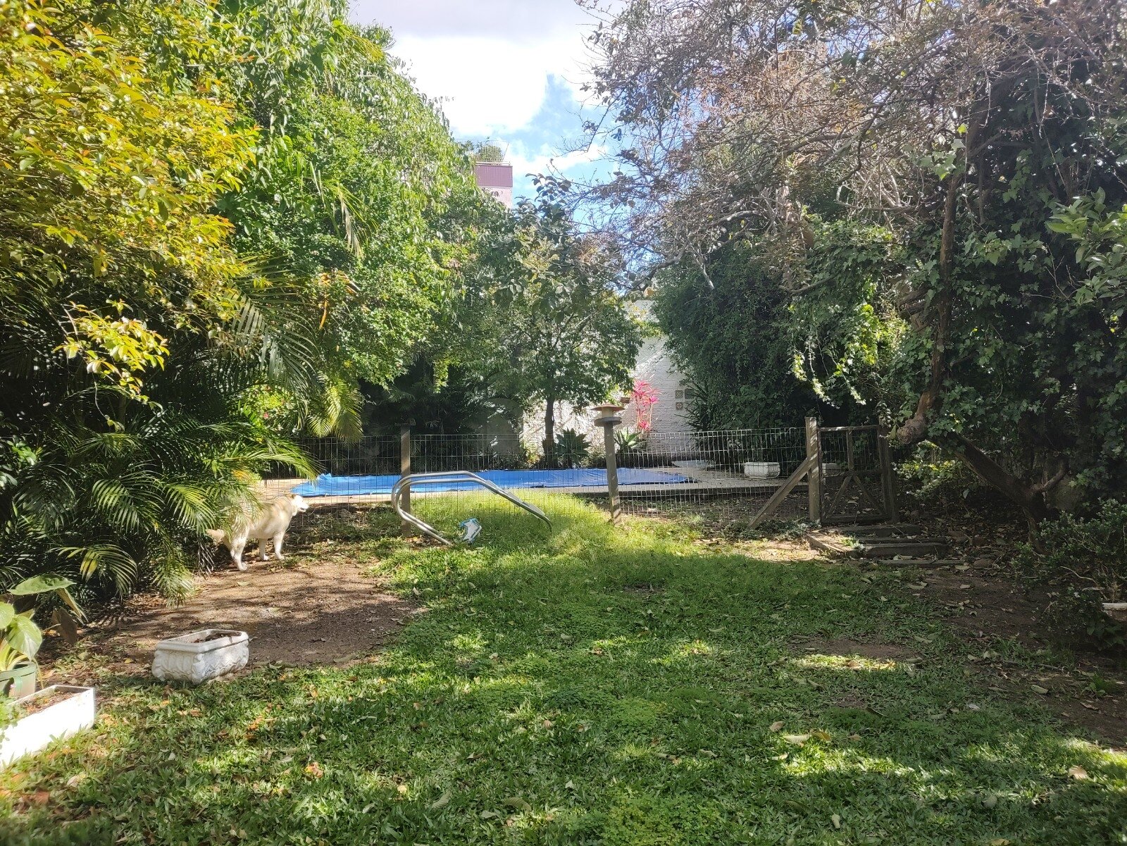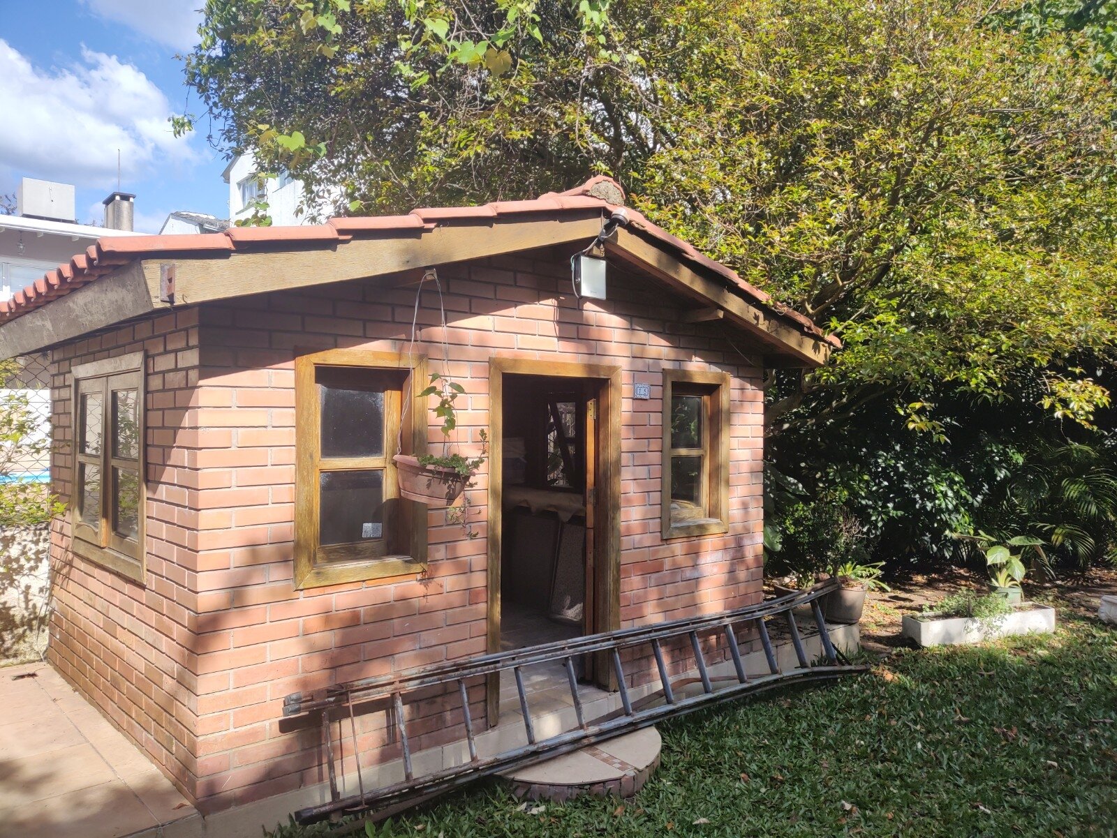 Pátio com diversas árvores frutíferas, uma casinha infantil em alvenaria e hidráulica instalada e com piscina para se refrescar no verão!