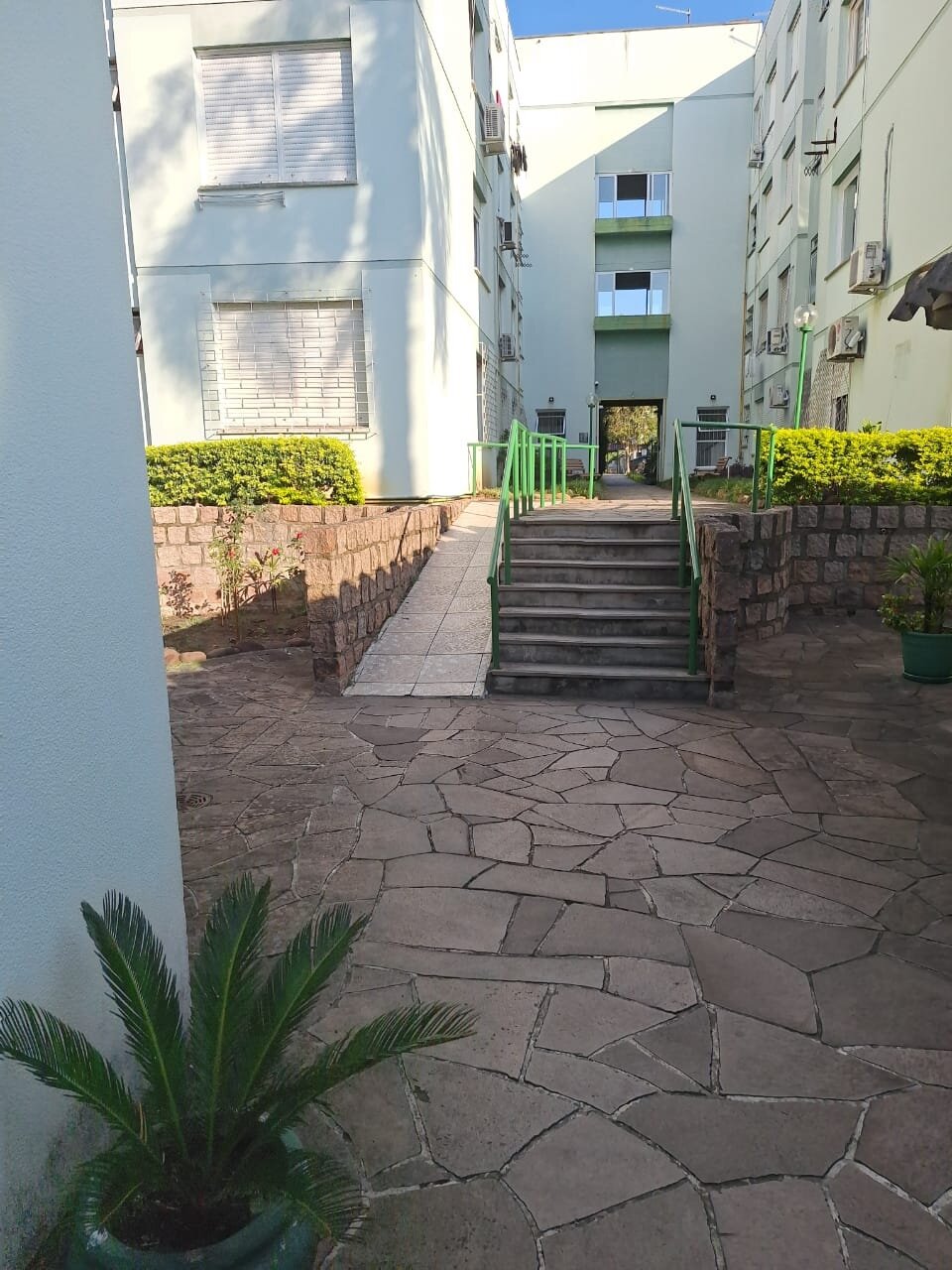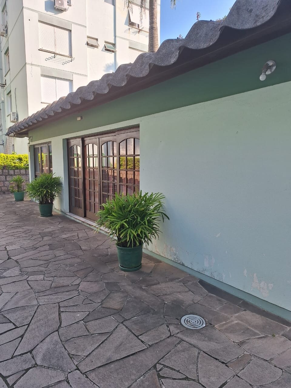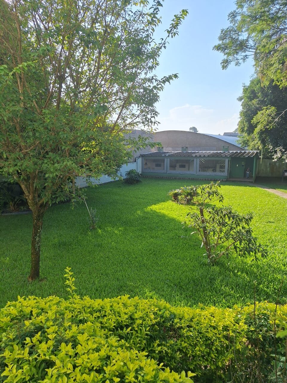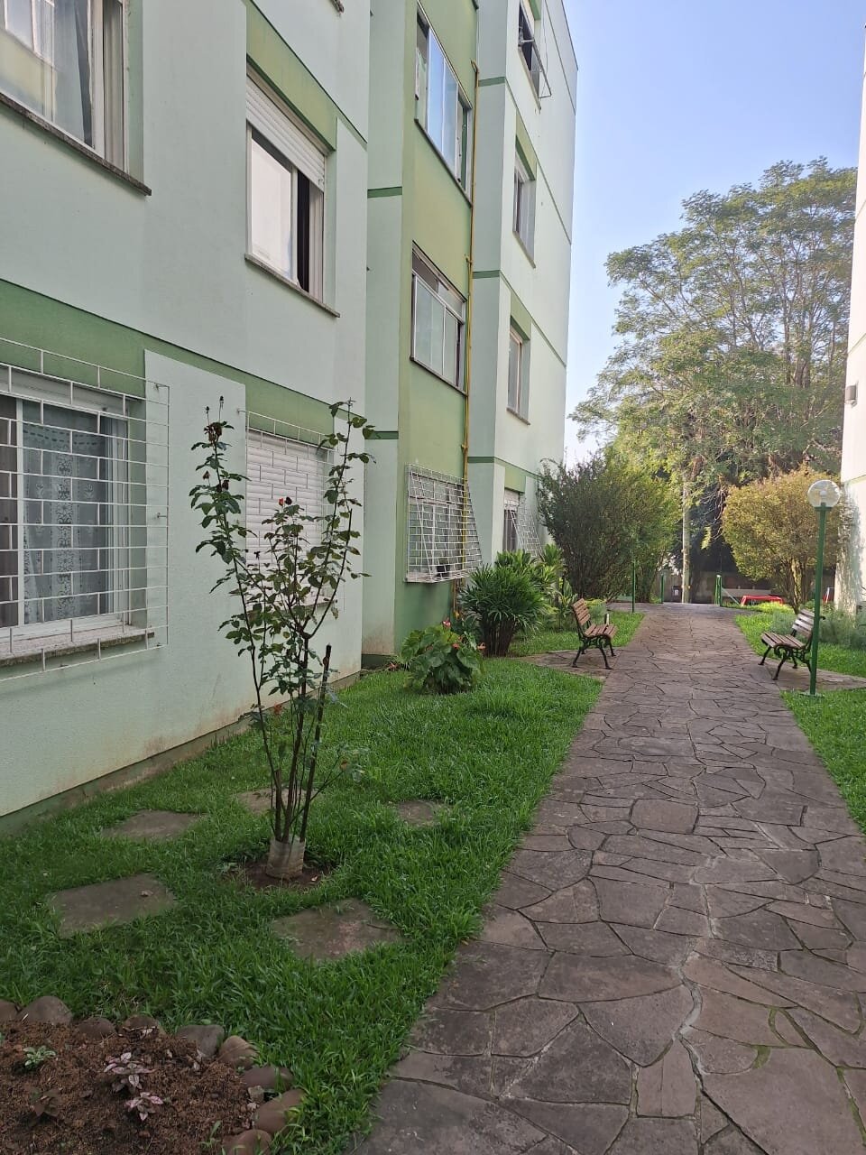 Condomínio pequeno, com salão de festas e amplo jardim para você descansar lendo um livro ou passeando com o seu pet.